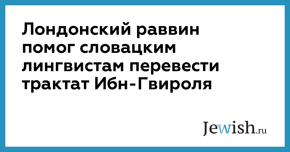 Лондонский раввин помог словацким лингвистам перевести трактат Ибн-Гвироля