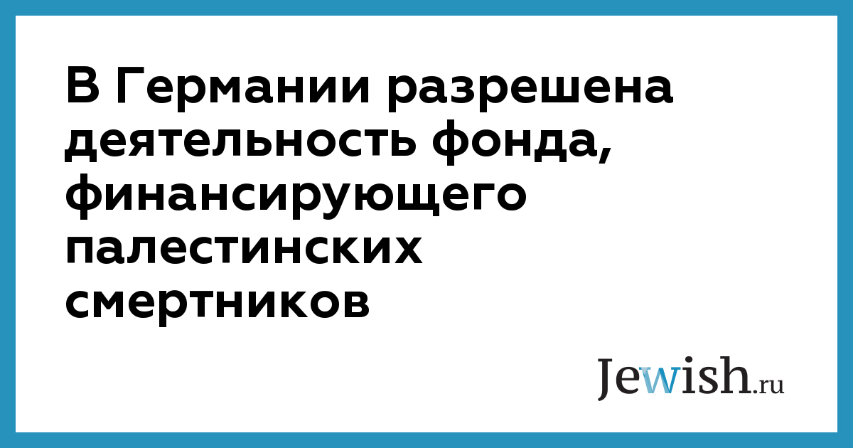 В Германии разрешена деятельность фонда, финансирующего палестинских смертников