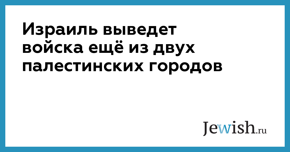 Из каких городов будет выведена израильская армия и когда это случится, будет решено на встрече министра обороны Израиля Шауля Мофаза и министра палестинской автономии по делам безопасности Мохаммеда Дахлана. Встреча состоится в начале следующей недели. По сообщению MIGnews.