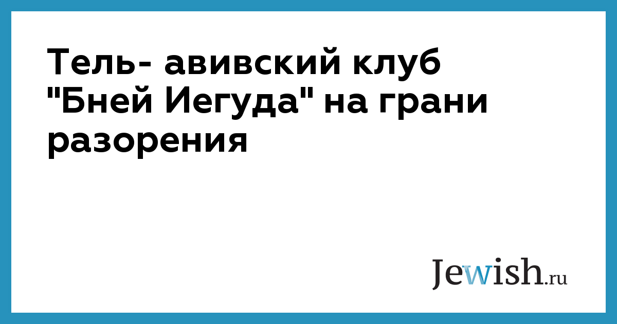Тель- авивский клуб "Бней Иегуда" на грани разорения