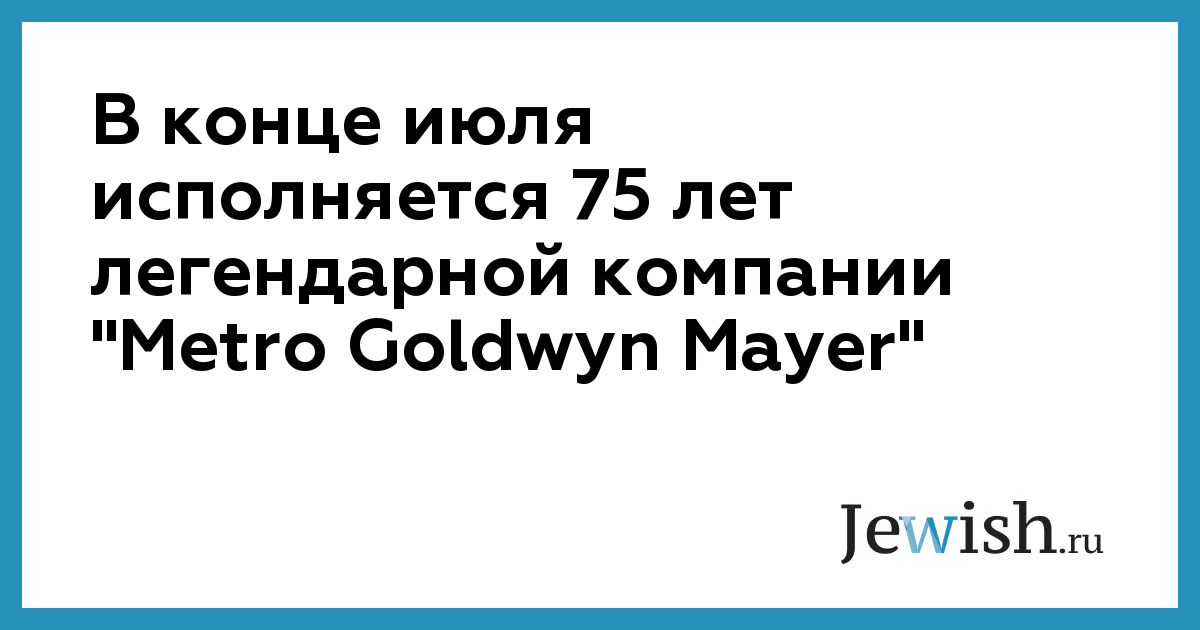 В конце июля исполняется 75 лет легендарной компании "Metro Goldwyn Mayer"