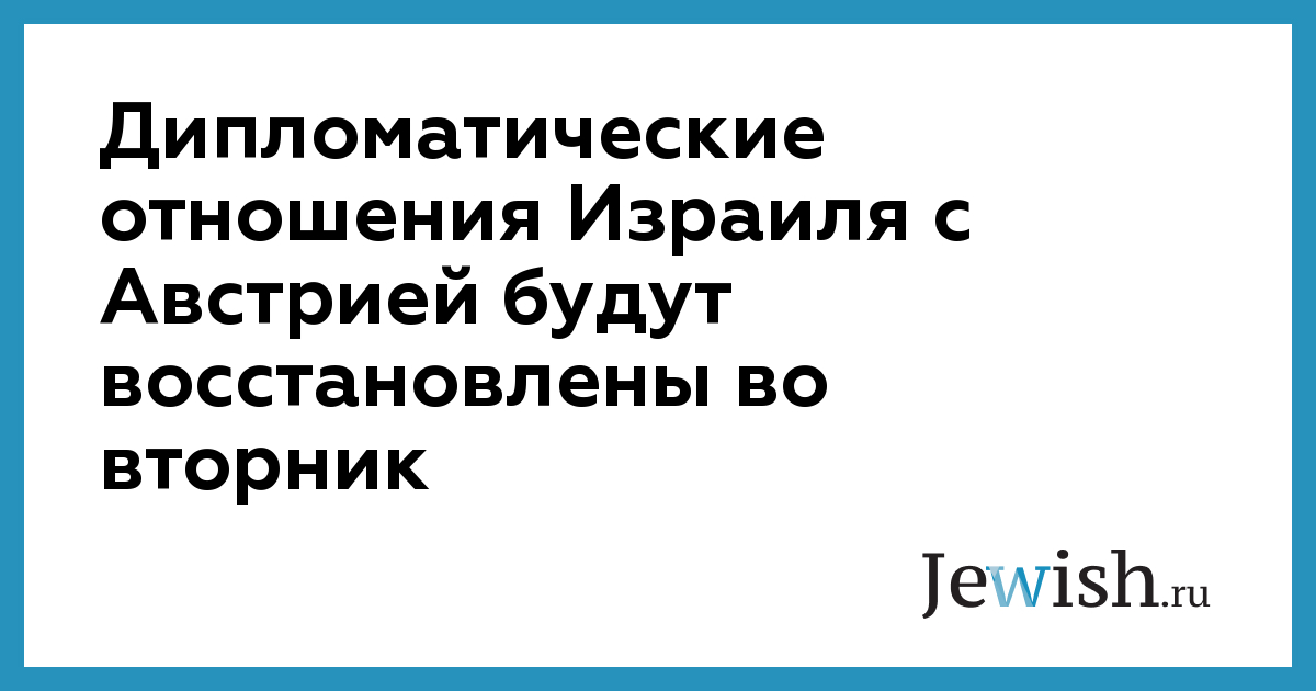 Дипломатические отношения Израиля с Австрией будут восстановлены во вторник