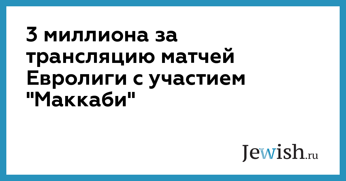 3 миллиона за трансляцию матчей Евролиги с участием "Маккаби"