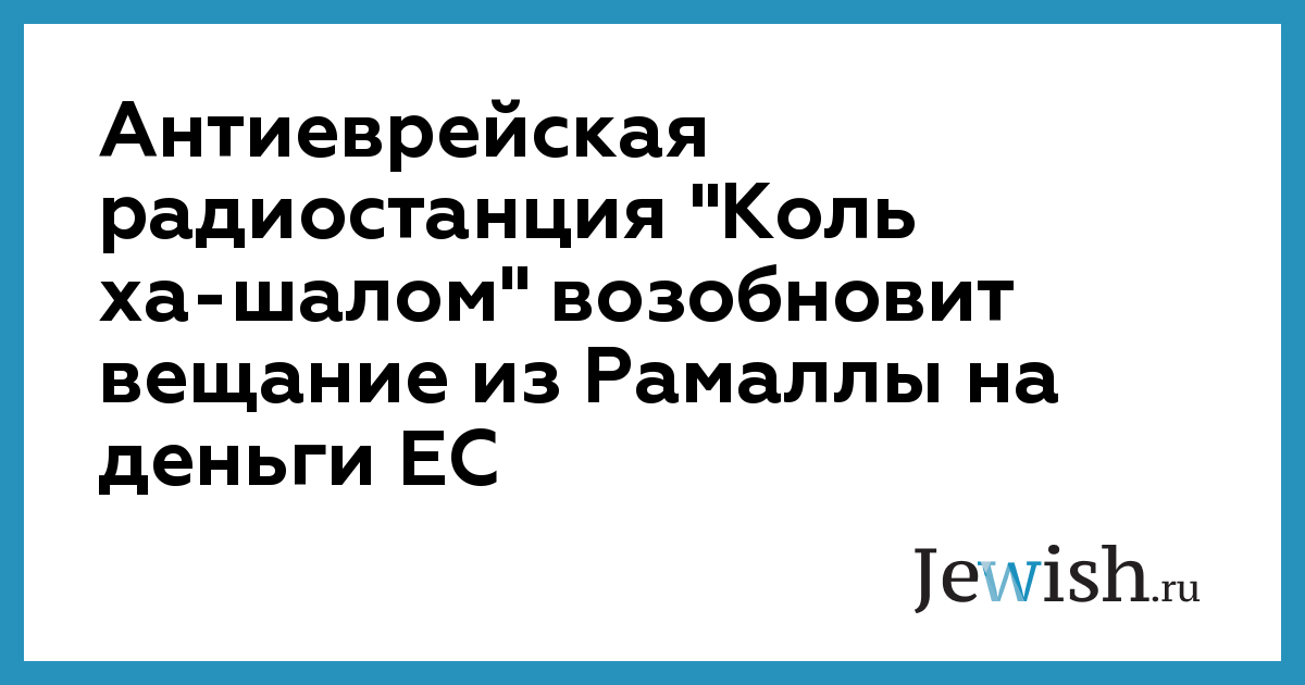 Антиеврейская радиостанция "Коль ха-шалом" возобновит вещание из Рамаллы на деньги ЕС