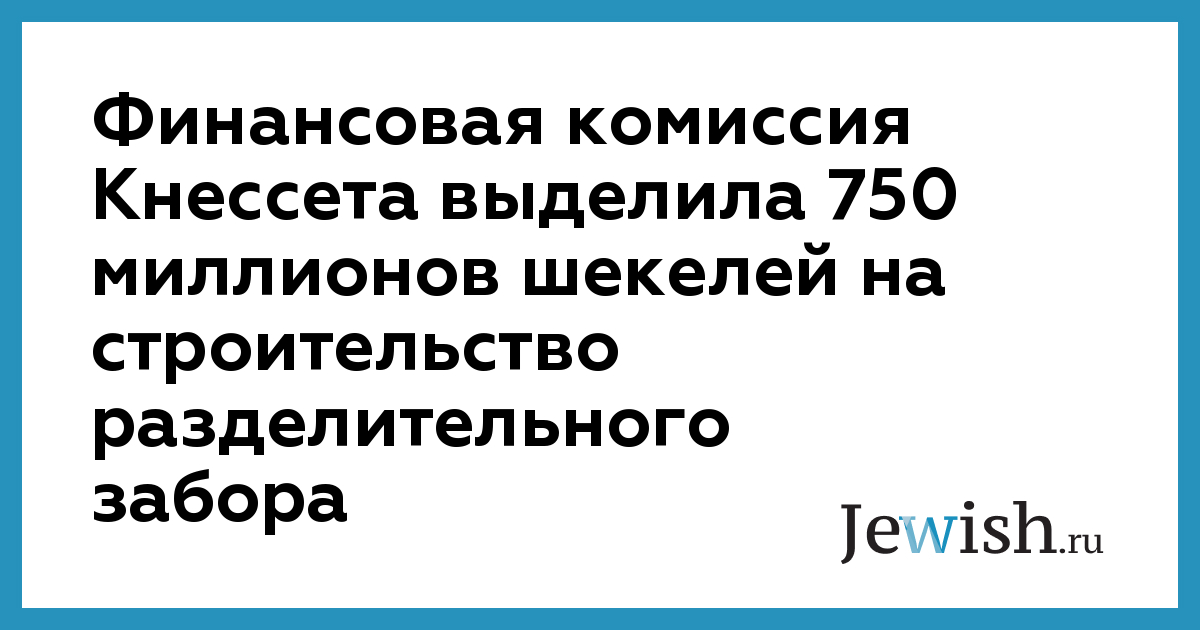 Финансовая комиссия Кнессета выделила 750 миллионов шекелей на строительство разделительного забора