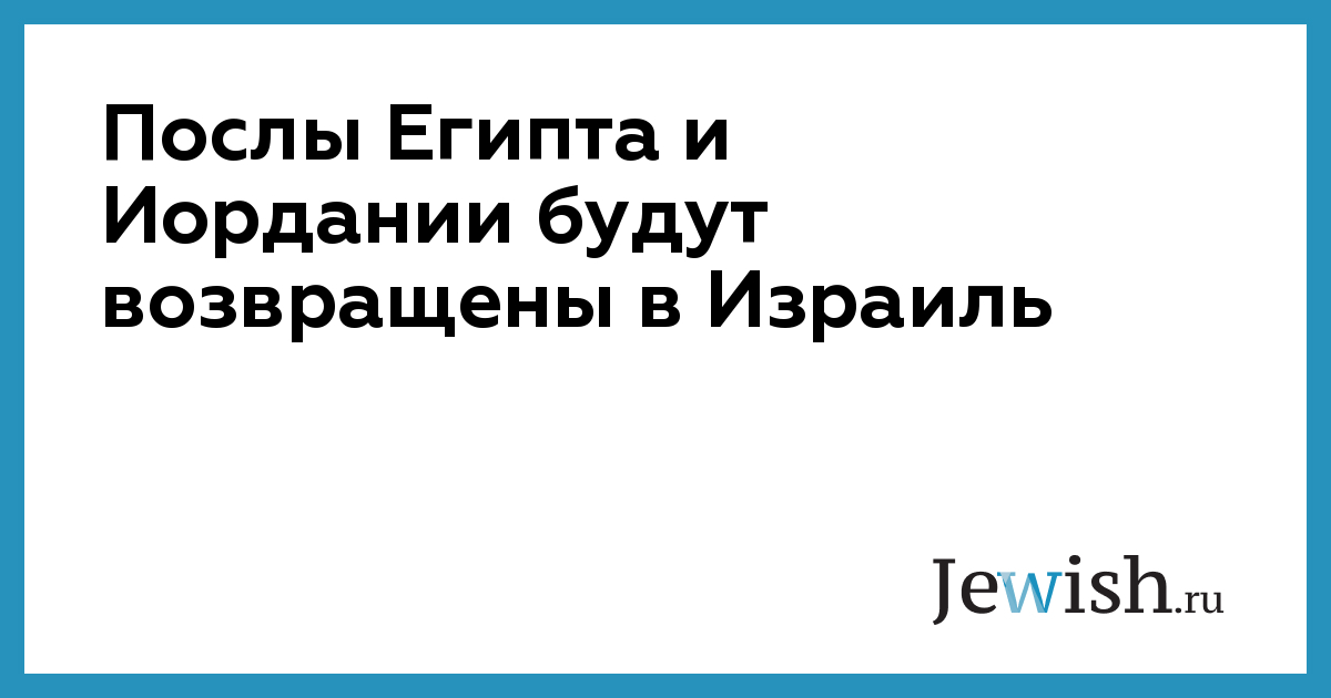 Послы Египта и Иордании будут возвращены в Израиль