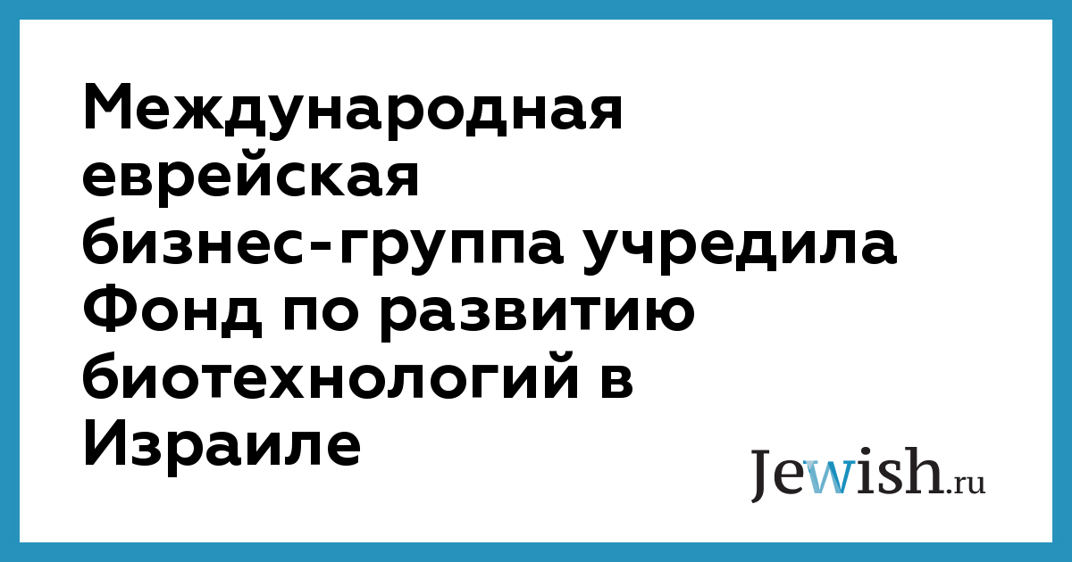 Международная еврейская бизнес-группа учредила Фонд по развитию биотехнологий в Израиле