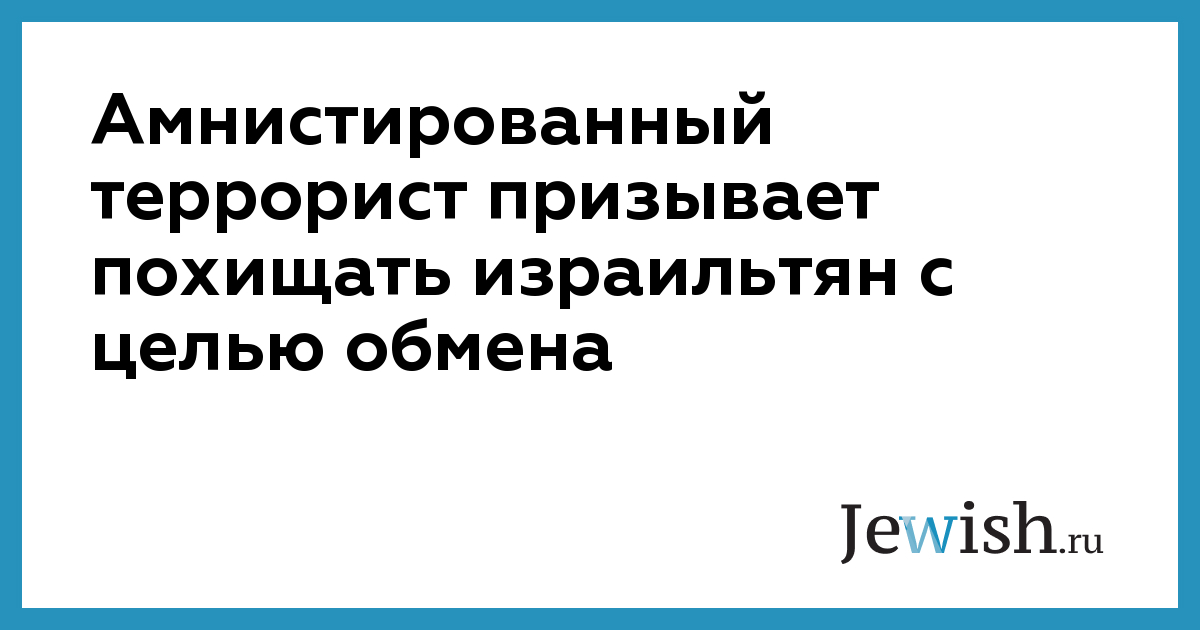 Амнистированный террорист призывает похищать израильтян с целью обмена