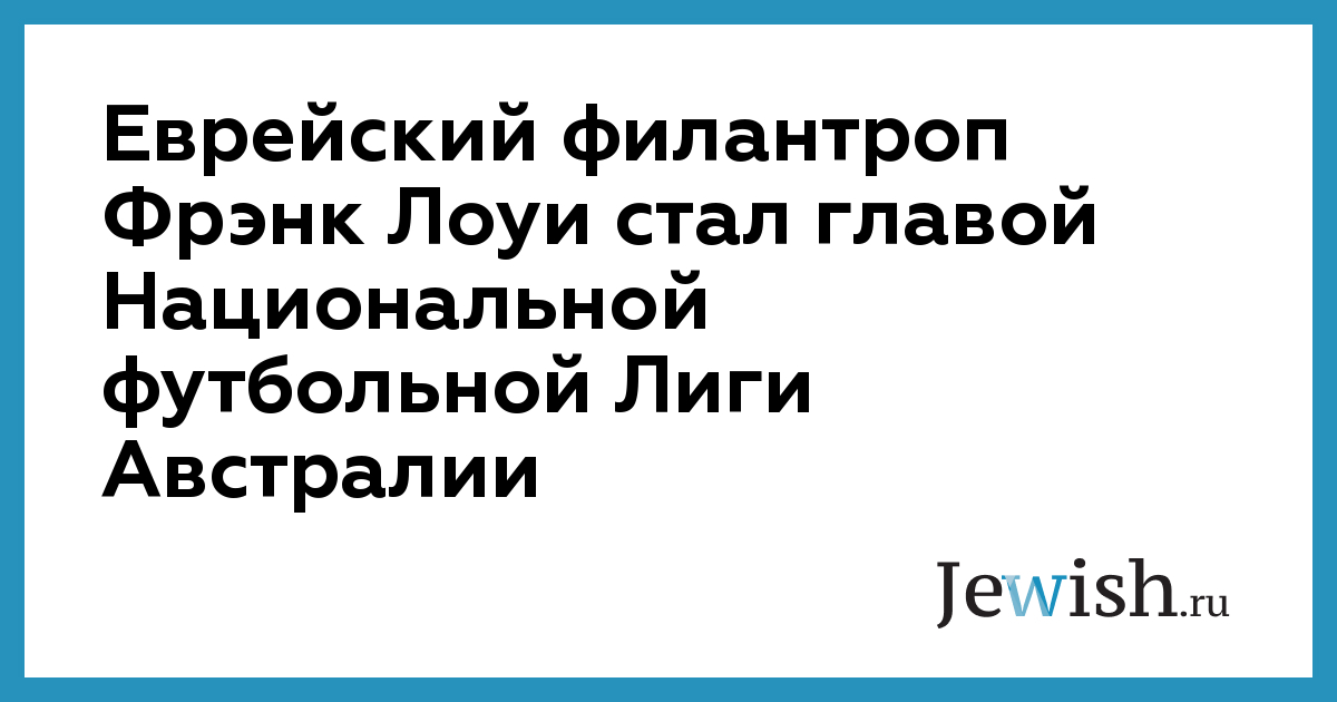 Еврейский филантроп Фрэнк Лоуи стал главой Национальной футбольной Лиги Австралии