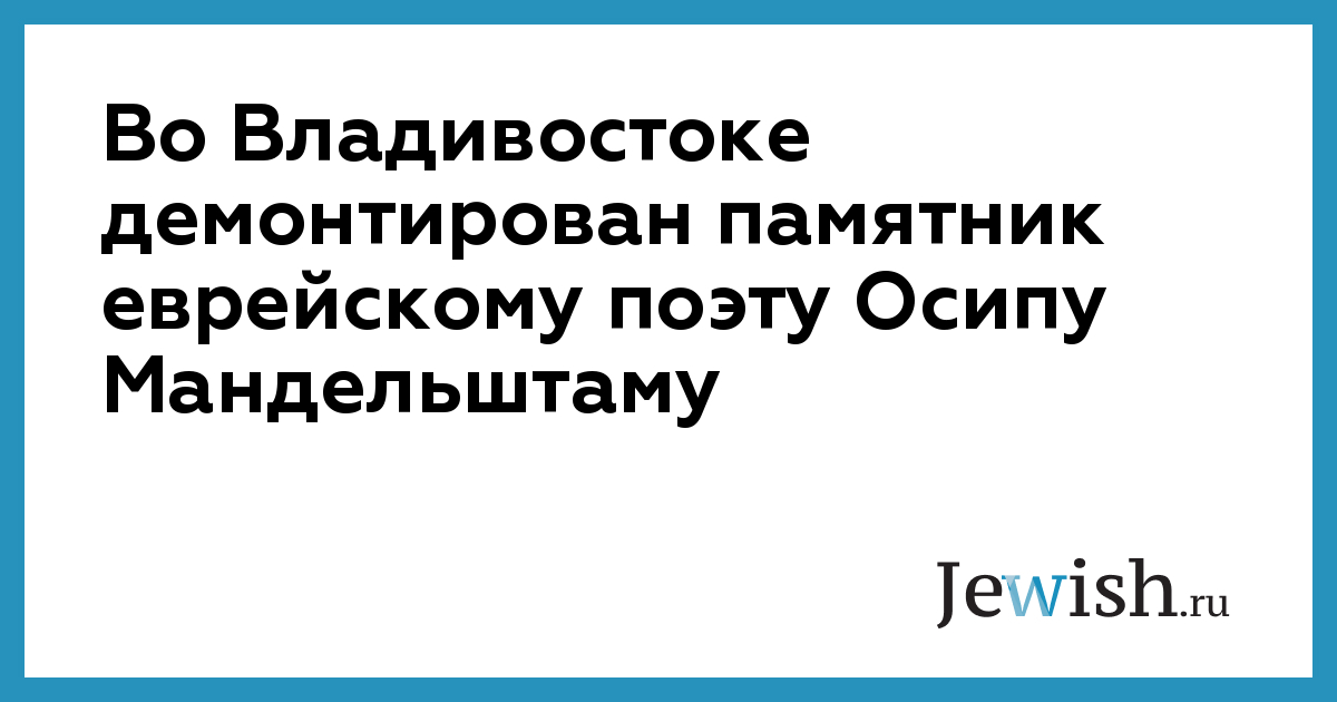 Во Владивостоке демонтирован памятник еврейскому поэту Осипу Мандельштаму