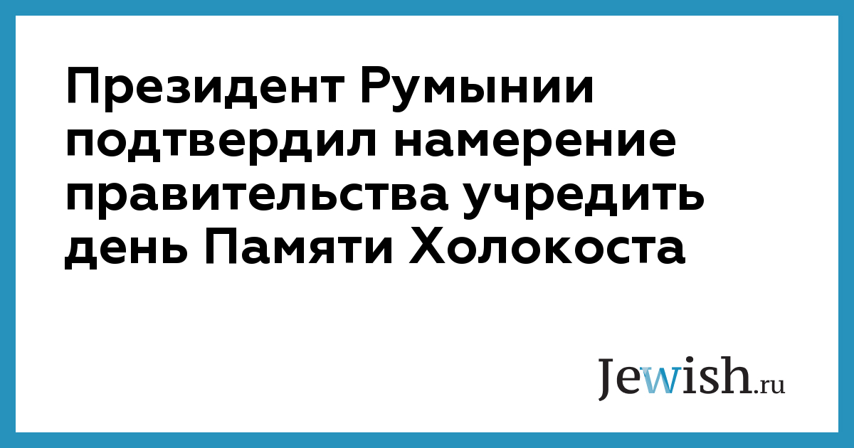 Президент Румынии подтвердил намерение правительства учредить день Памяти Холокоста
