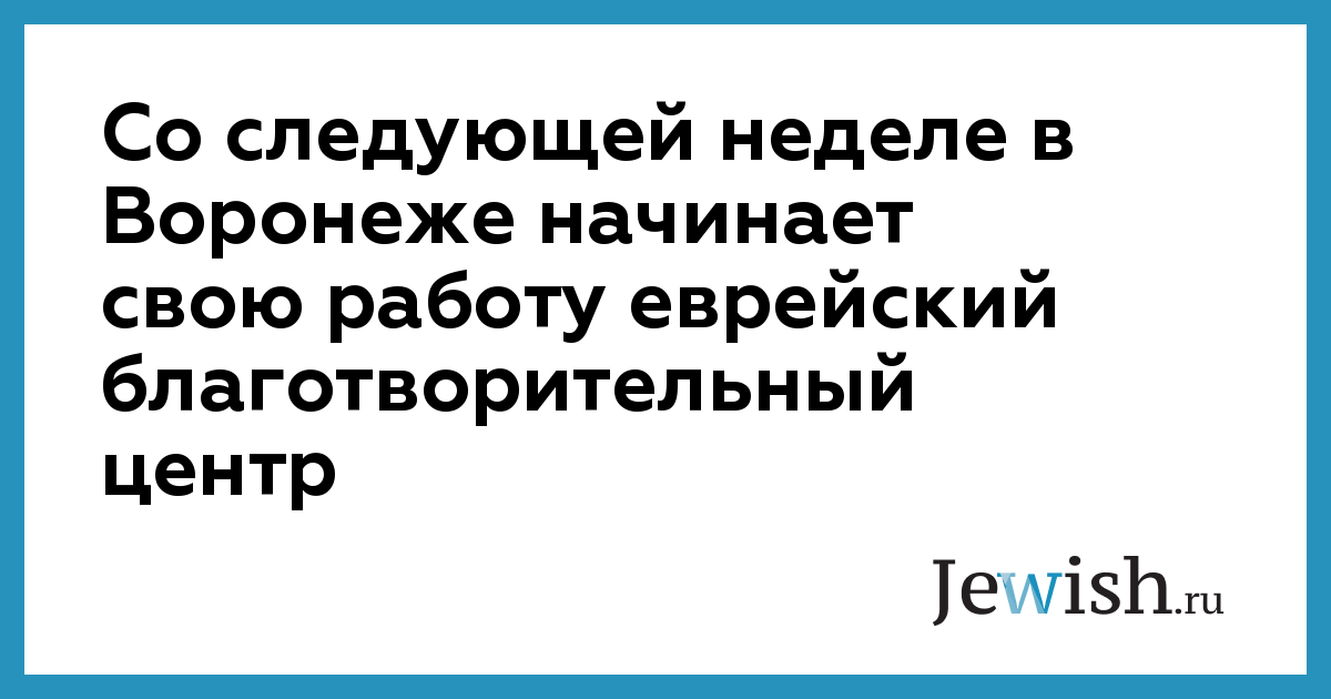 Со следующей неделе в Воронеже начинает свою работу еврейский благотворительный центр