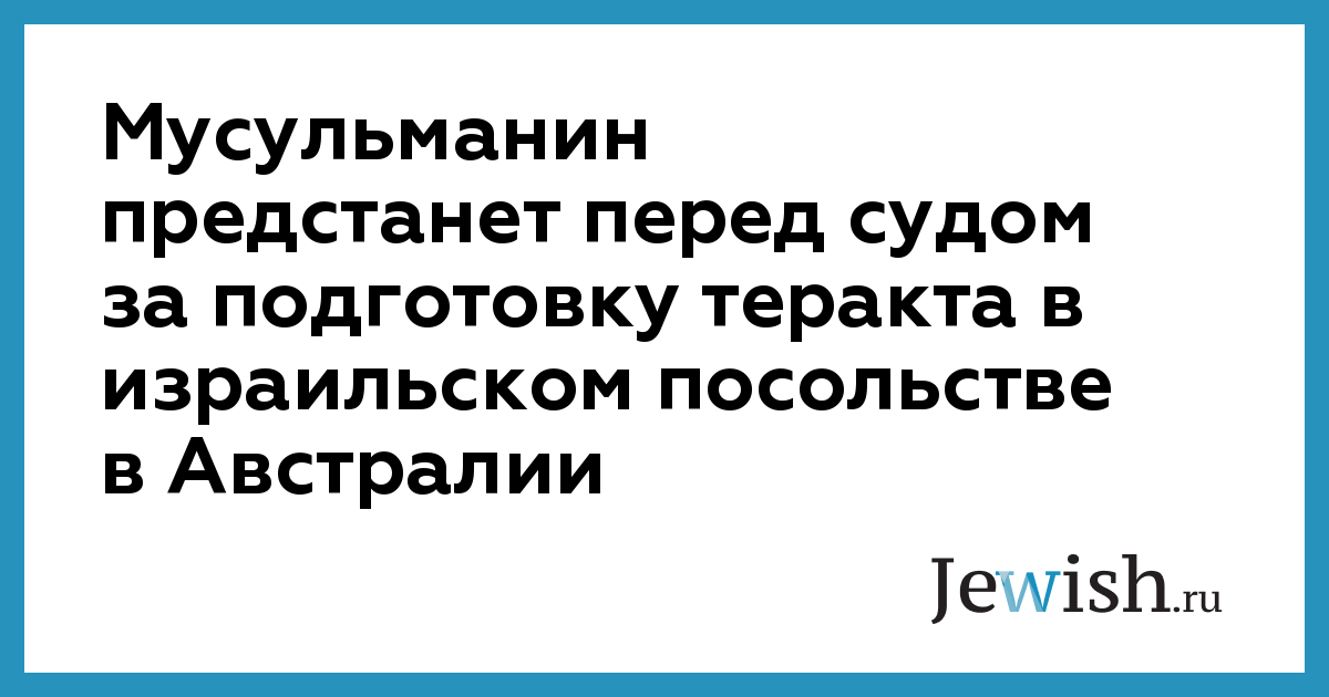 Мусульманин предстанет перед судом за подготовку теракта в израильском посольстве в Австралии
