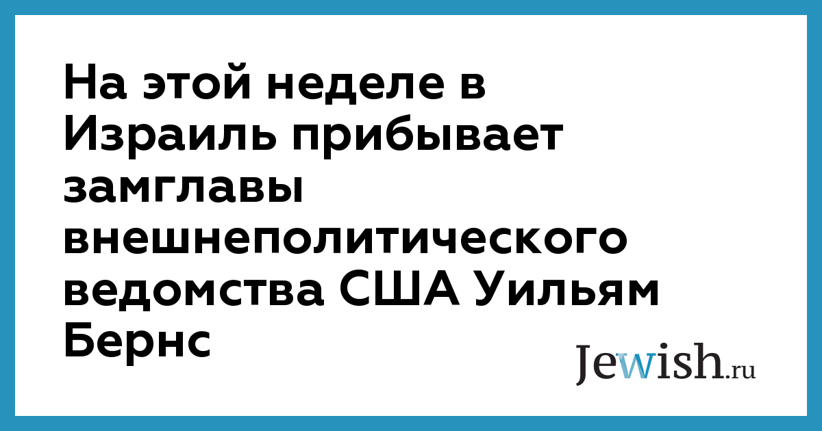 На этой неделе в Израиль прибывает замглавы внешнеполитического ведомства США Уильям Бернс