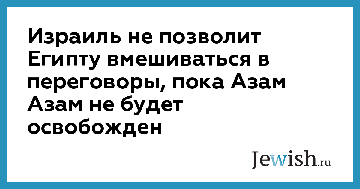 Израиль не позволит Египту вмешиваться в переговоры, пока Азам Азам не будет освобожден