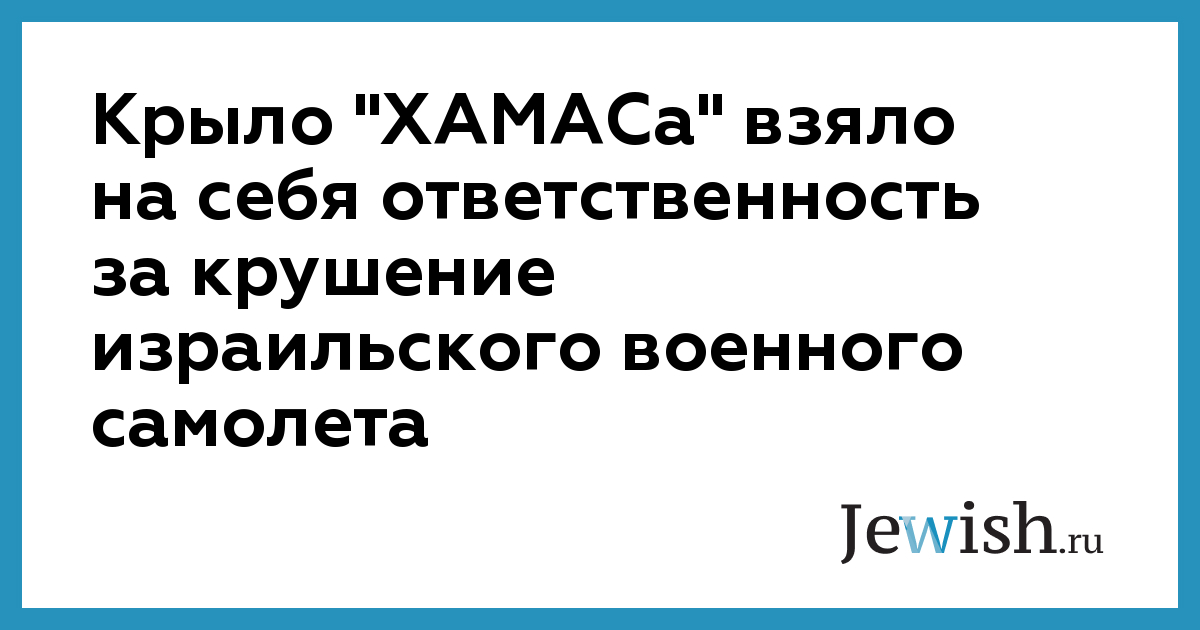 Крыло "ХАМАСа" взяло на себя ответственность за крушение израильского военного самолета