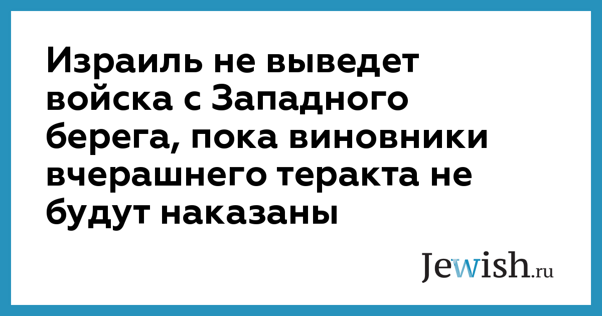 Израиль не выведет войска с Западного берега, пока виновники вчерашнего теракта не будут наказаны