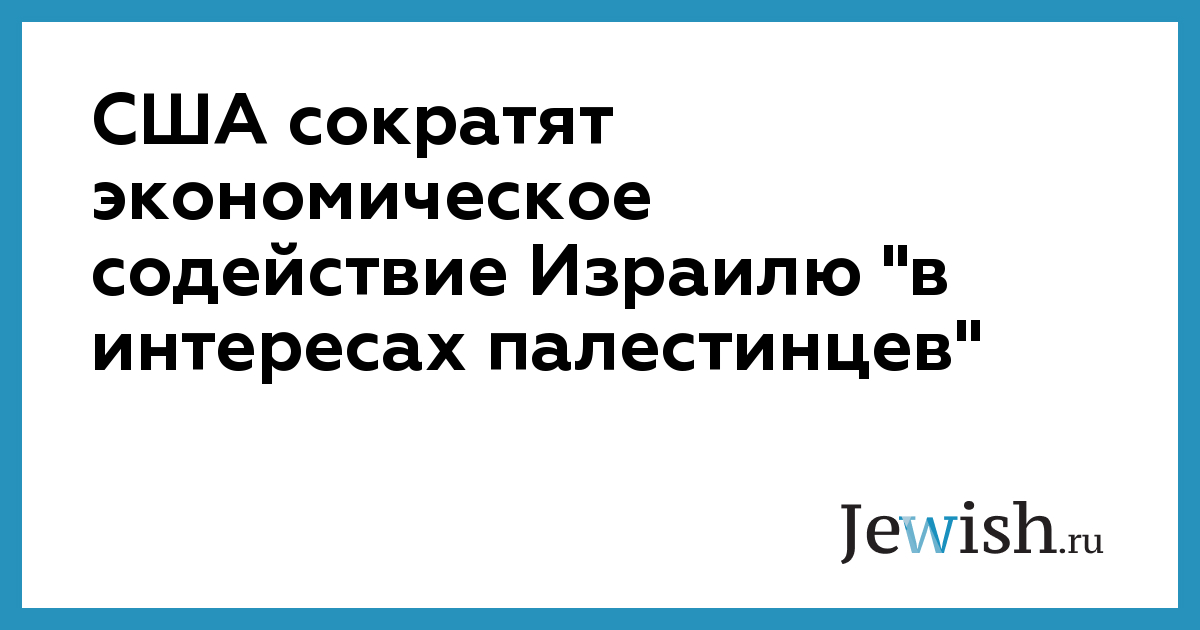США сократят экономическое содействие Израилю "в интересах палестинцев"