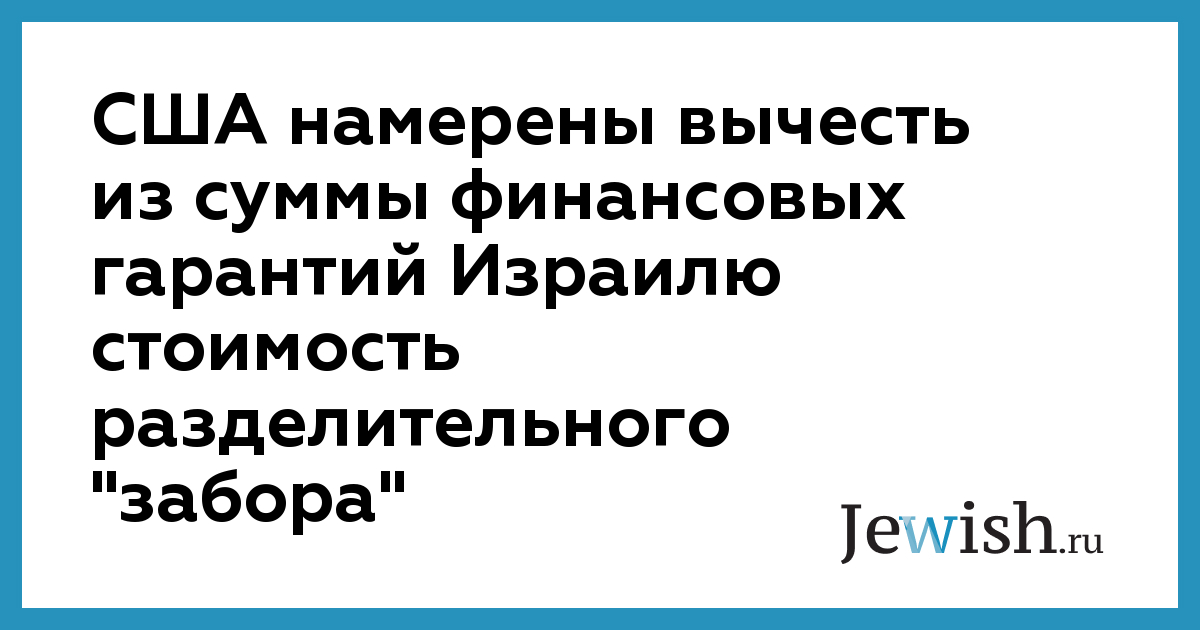В случае, если ответ правительства США будет положительным, из американских гарантий будет вычтена сумма, затраченная правительством Израиля на строительство тех частей разделительного забора, которые лежат к востоку от границ 1967 года. Приблизительно, Израиль затрачивает 1 миллион шекелей на строительство 0,8 километра забора. Сумма, выделенная правительством страны на строительство второй части забора составляет 750 миллионов шекелей.