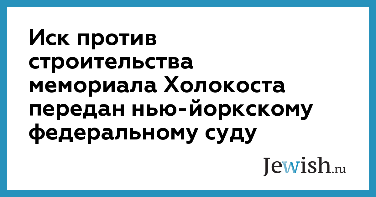 Иск против строительства мемориала Холокоста передан нью-йоркскому федеральному суду