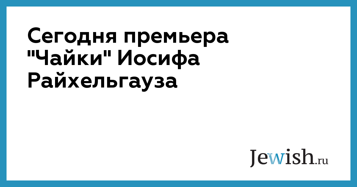Сегодня премьера "Чайки" Иосифа Райхельгауза