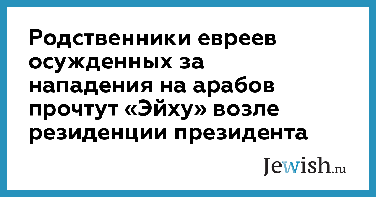 Родственники евреев осужденных за нападения на арабов прочтут «Эйху» возле резиденции президента