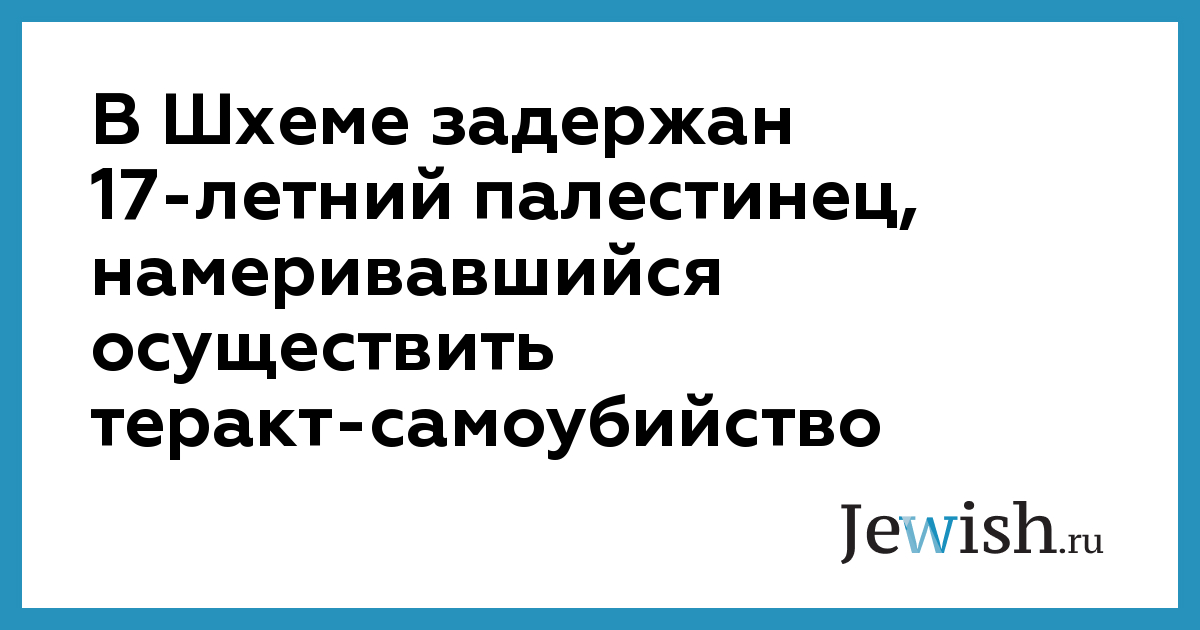 В Шхеме задержан 17-летний палестинец, намеривавшийся осуществить теракт-самоубийство