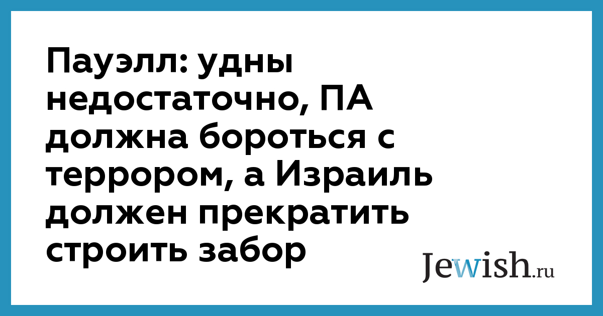 Пауэлл: удны недостаточно, ПА должна бороться с террором, а Израиль должен прекратить строить забор