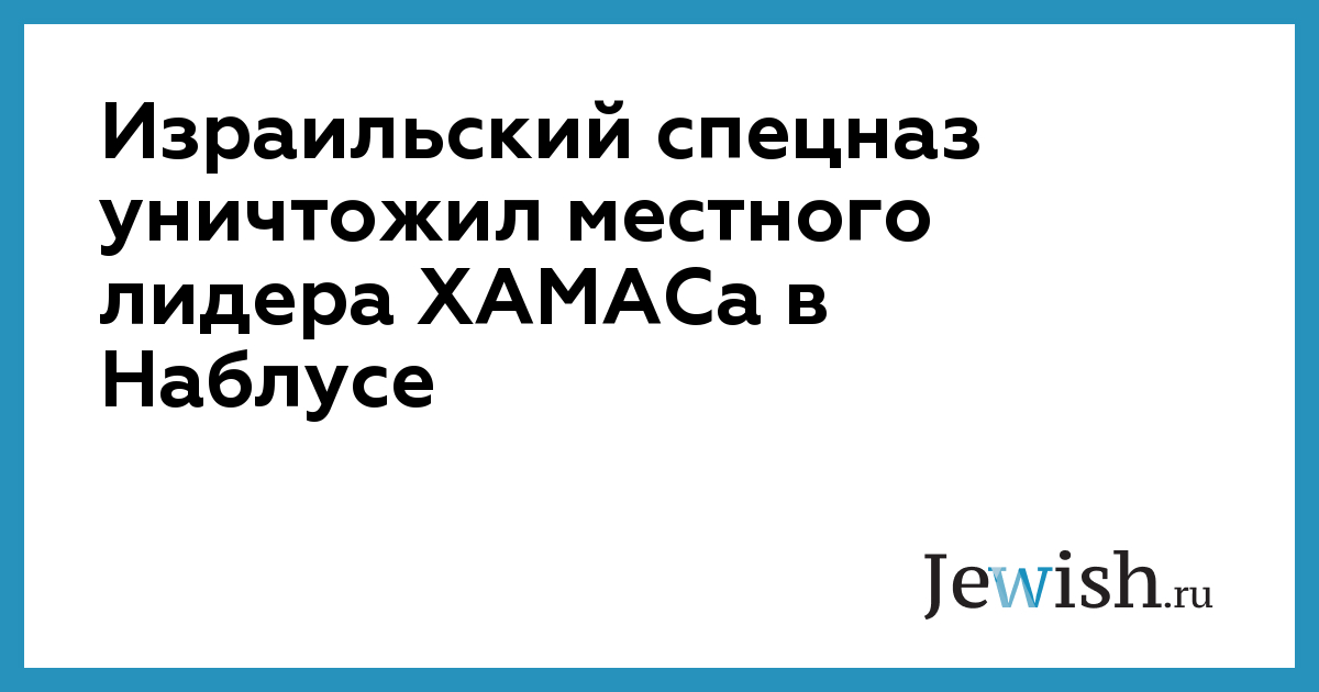 Израильский спецназ уничтожил местного лидера ХАМАСа в Наблусе