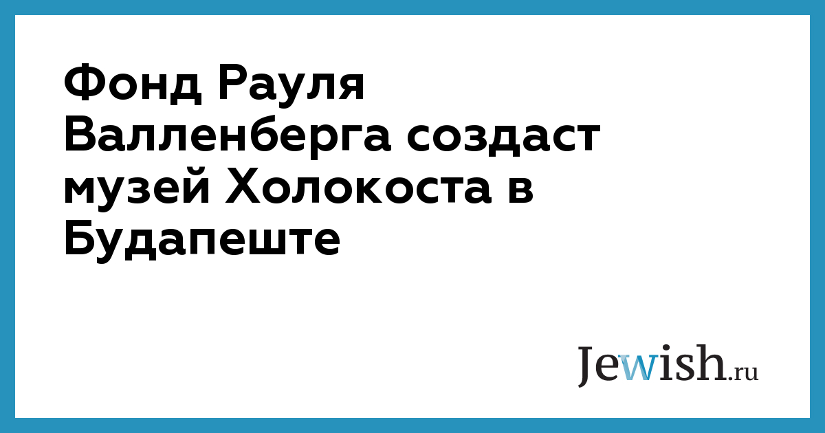 Фонд Рауля Валленберга создаст музей Холокоста в Будапеште