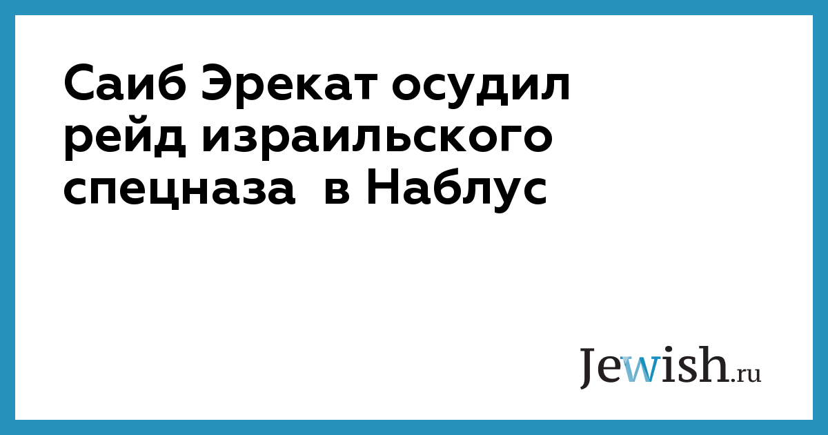 Саиб Эрекат осудил рейд израильского спецназа в Наблус