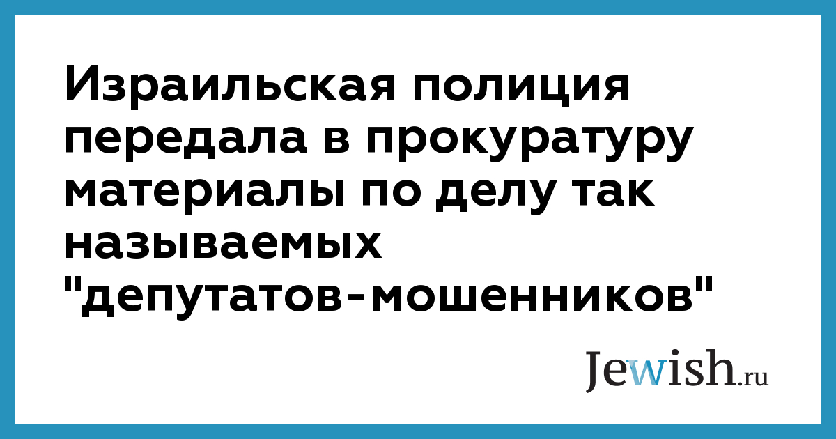 Израильская полиция передала в прокуратуру материалы по делу так называемых "депутатов-мошенников"