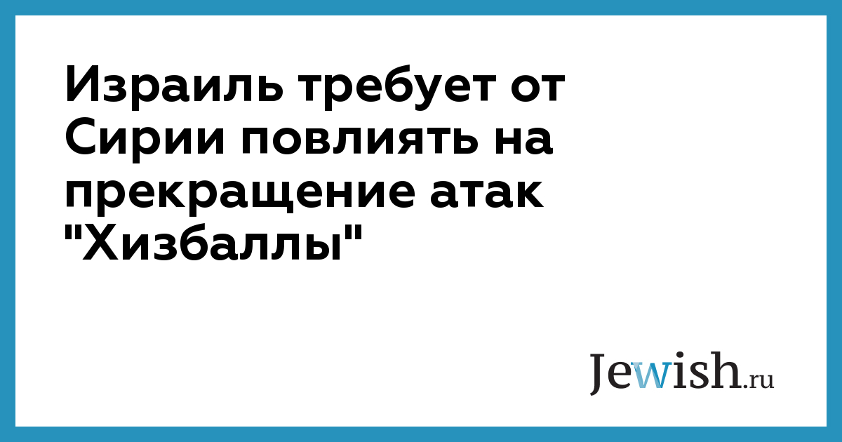 Израиль требует от Сирии повлиять на прекращение атак "Хизбаллы"