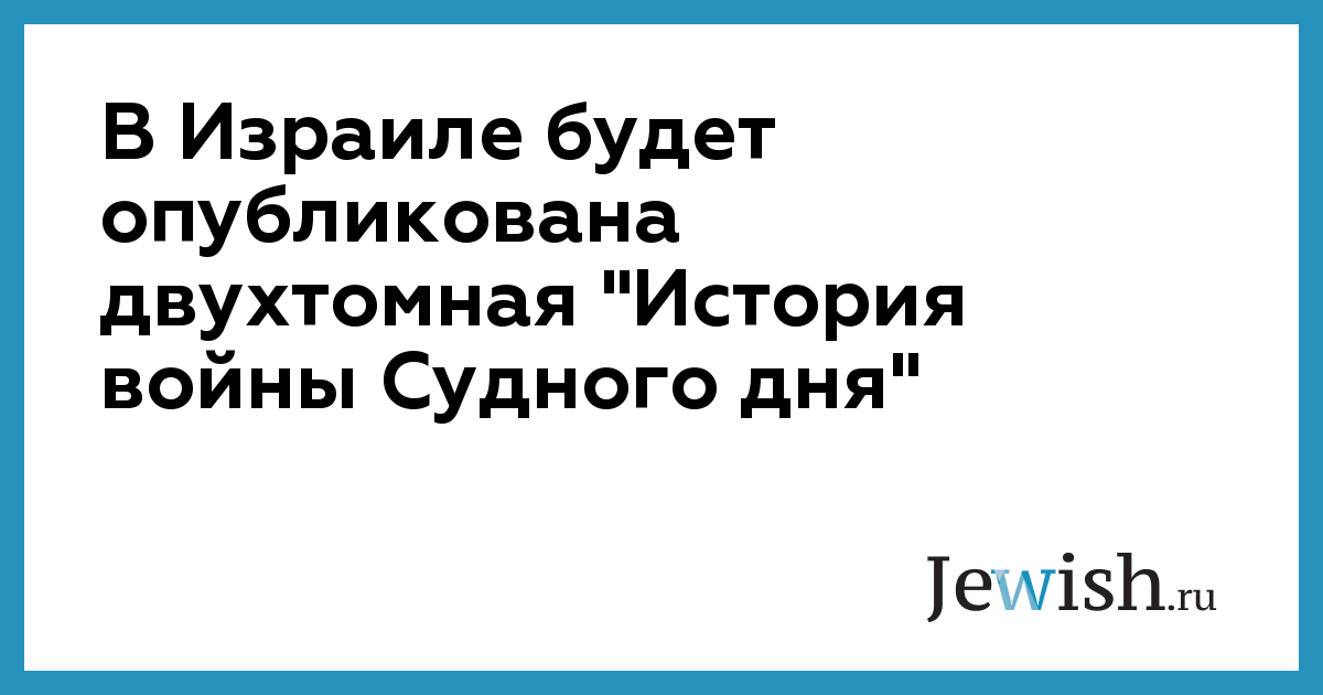 В Израиле будет опубликована двухтомная "История войны Судного дня"