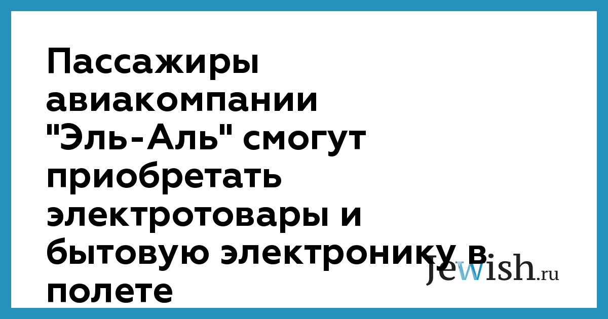 Пассажиры авиакомпании "Эль-Аль" смогут приобретать электротовары и бытовую электронику в полете