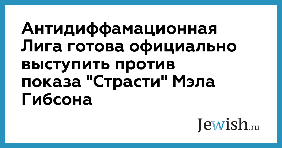 Антидиффамационная Лига готова официально выступить против показа "Страсти" Мэла Гибсона