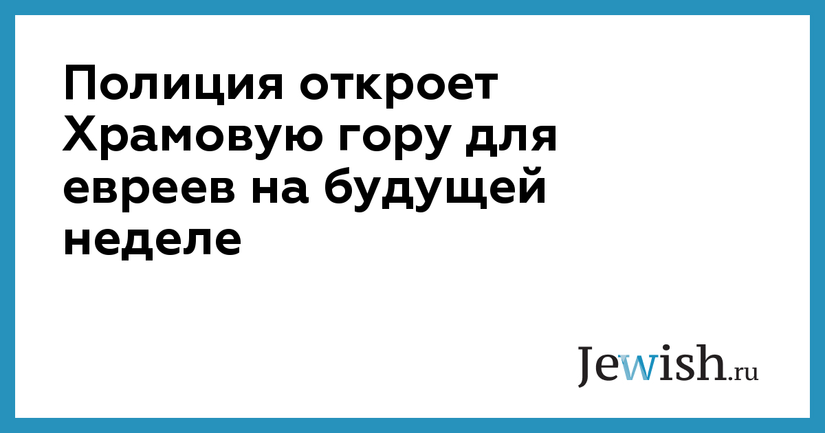 Полиция откроет Храмовую гору для евреев на будущей неделе