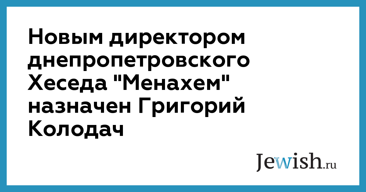 Новым директором днепропетровского Хеседа "Менахем" назначен Григорий Колодач