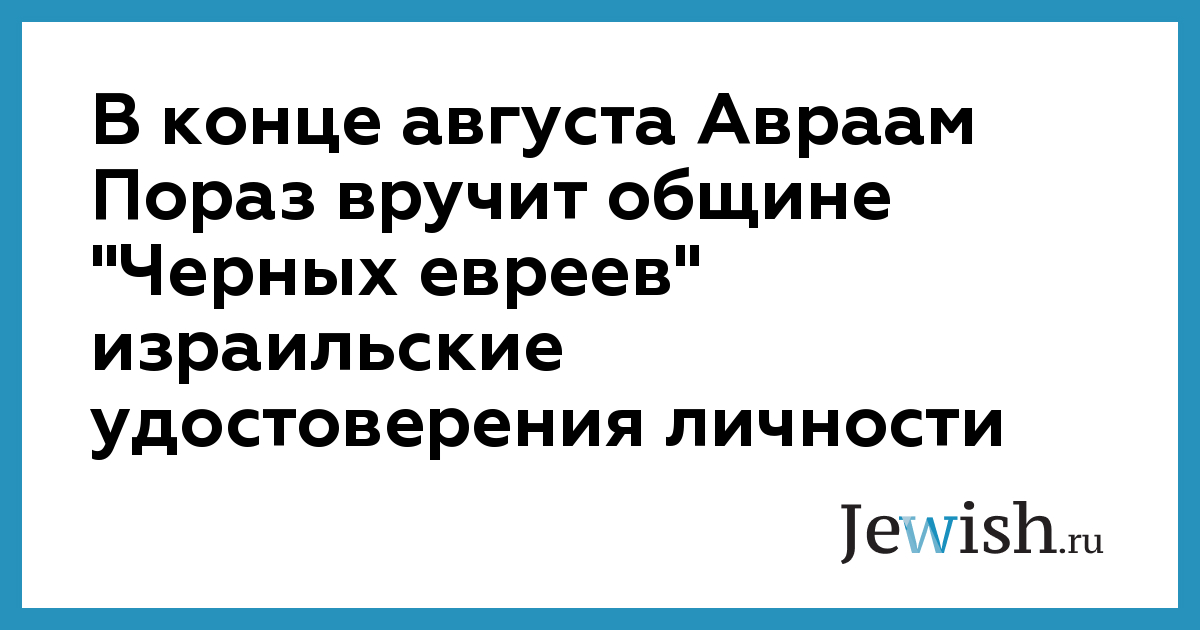 В конце августа Авраам Пораз вручит общине "Черных евреев" израильские удостоверения личности
