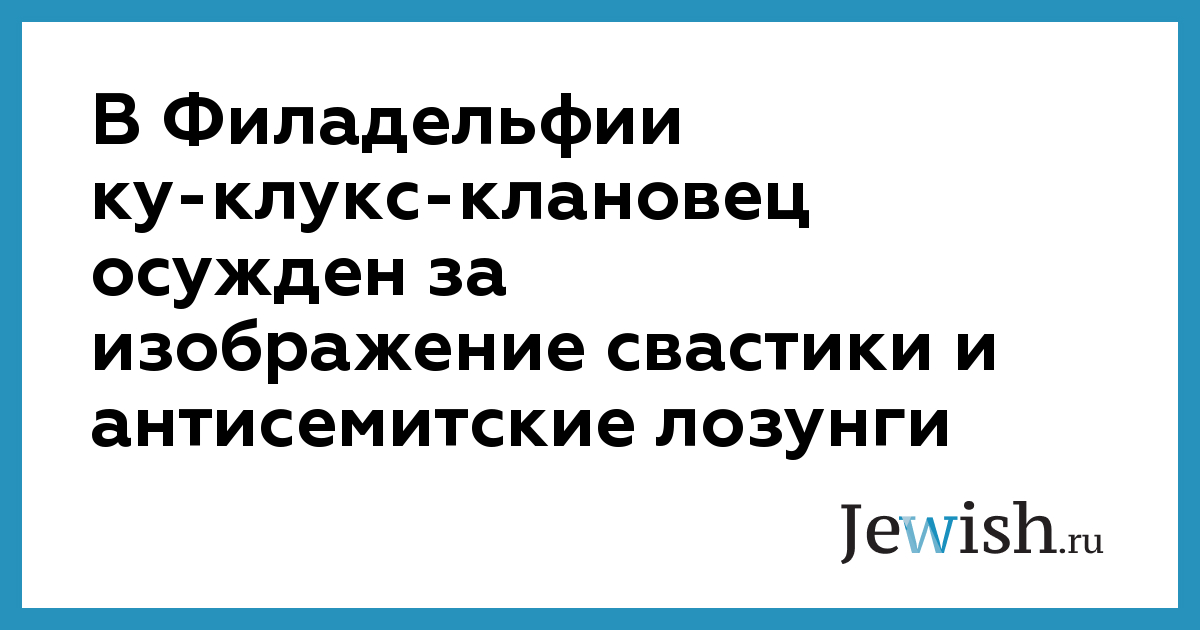 В Филадельфии ку-клукс-клановец осужден за изображение свастики и антисемитские лозунги