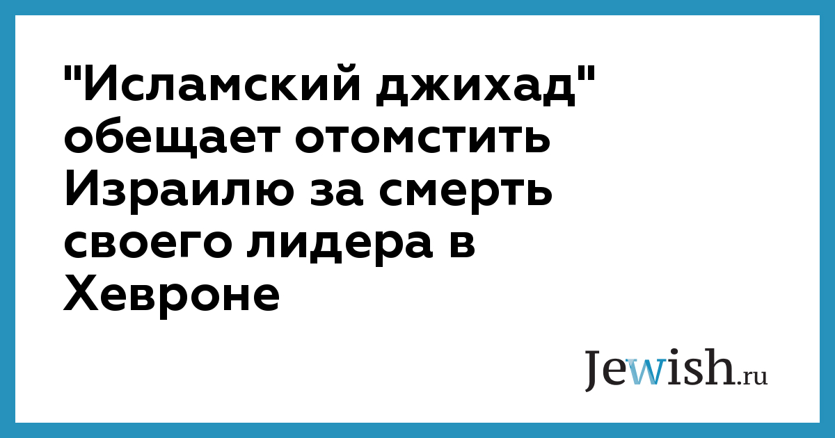 "Исламский джихад" обещает отомстить Израилю за смерть своего лидера в Хевроне