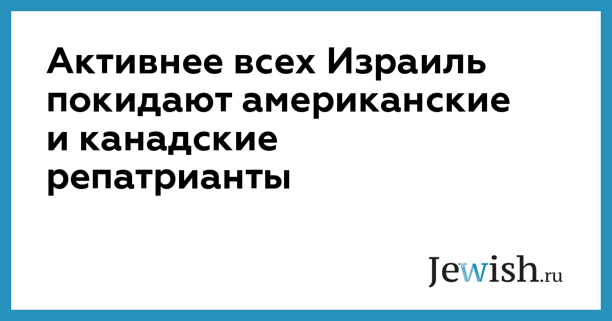 Активнее всех Израиль покидают американские и канадские репатрианты