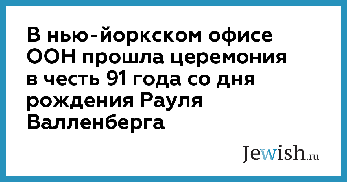 В нью-йоркском офисе ООН прошла церемония в честь 91 года со дня рождения Рауля Валленберга