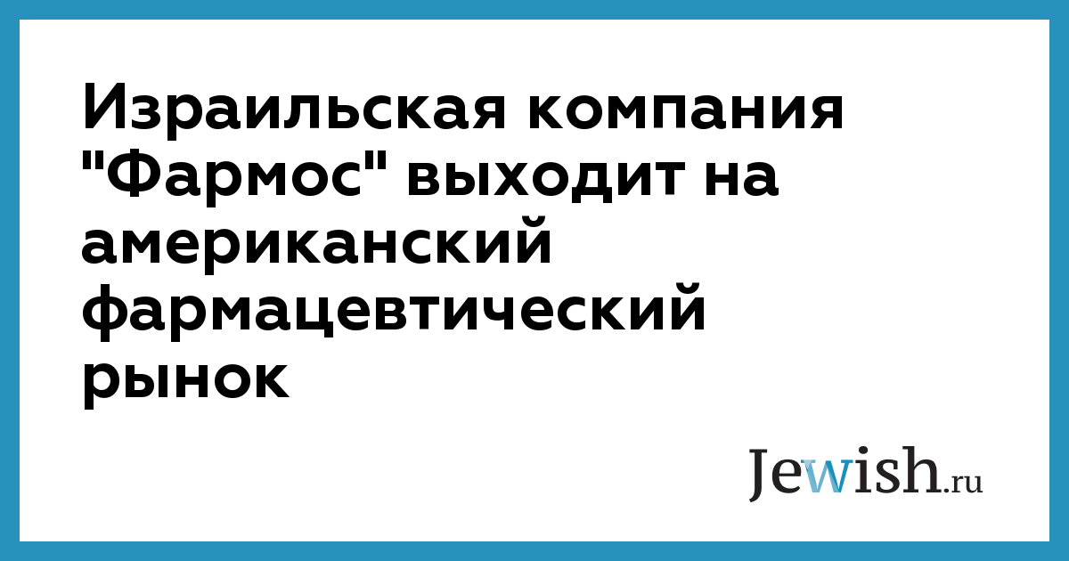 Израильская компания "Фармос" выходит на американский фармацевтический рынок