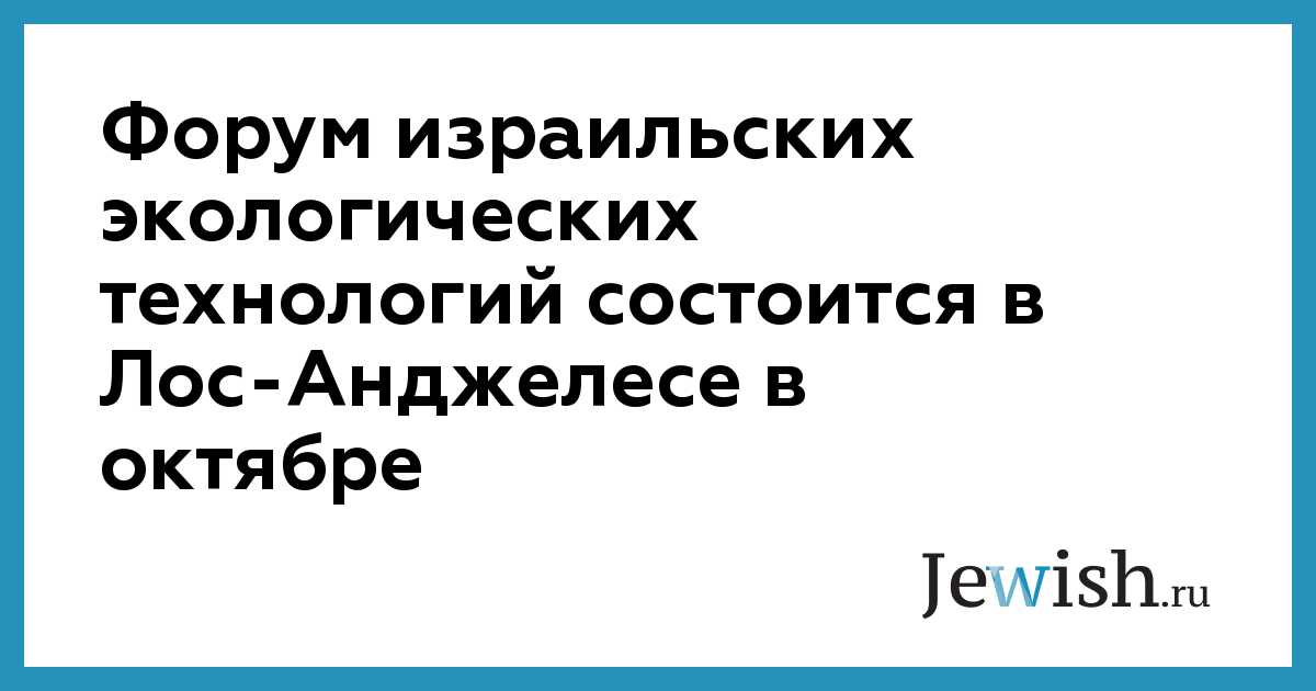 Форум израильских экологических технологий состоится в Лос-Анджелесе в октябре