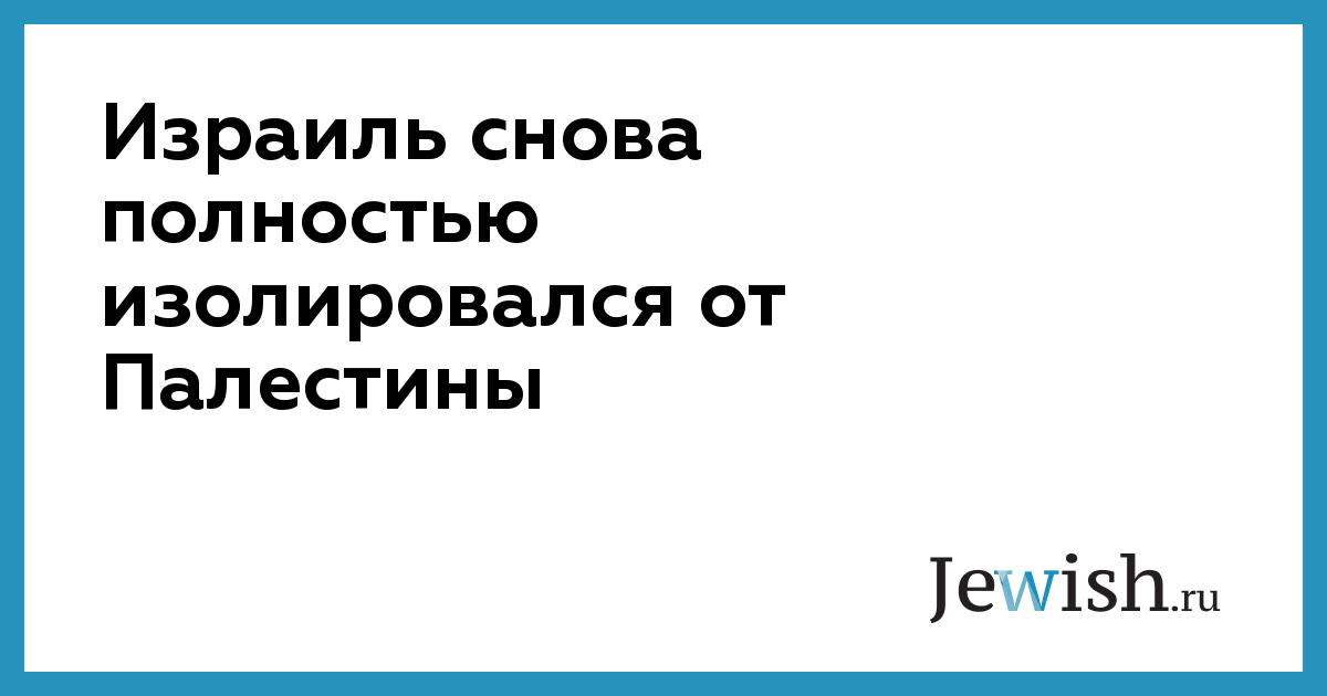 Израиль снова полностью изолировался от Палестины