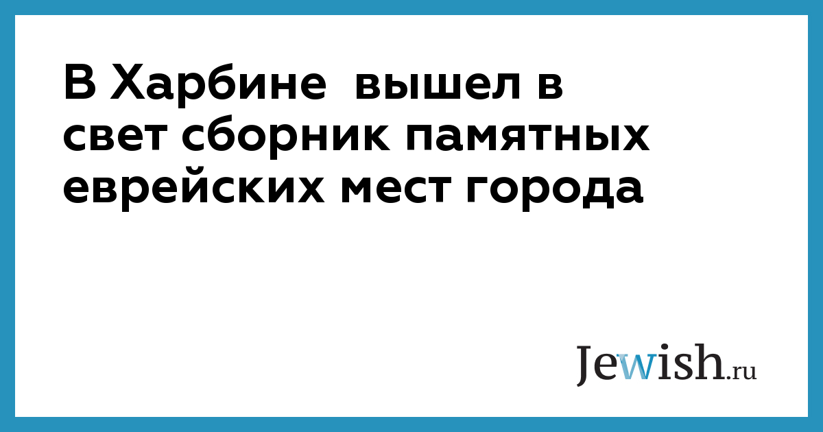 В Харбине вышел в свет сборник памятных еврейских мест города