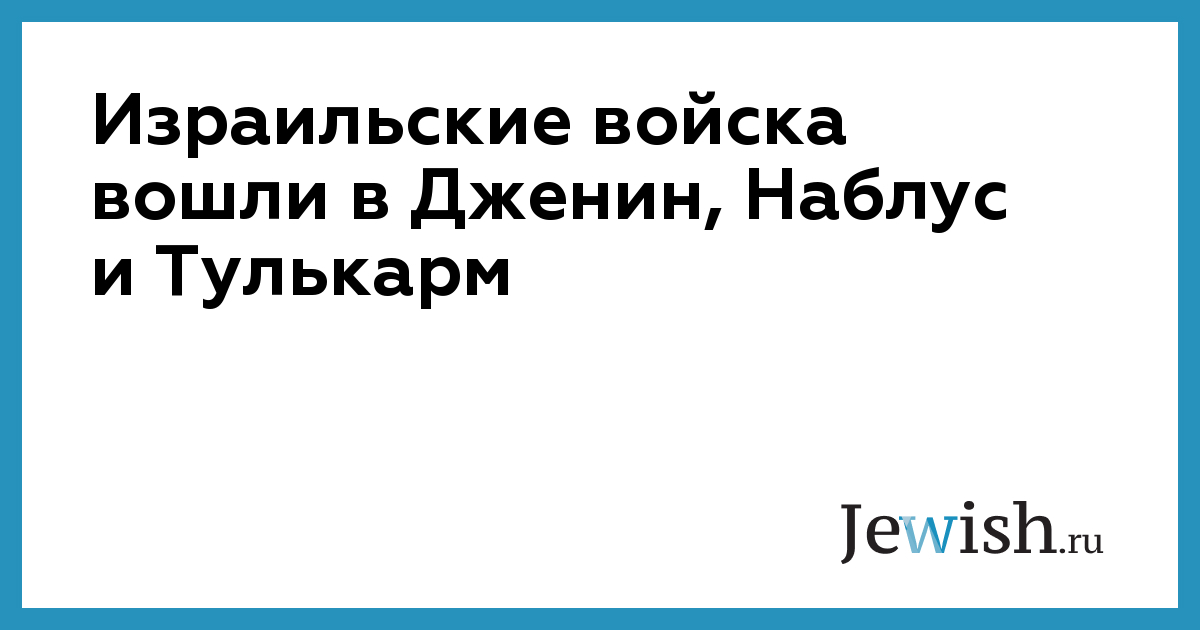 Израильские войска вошли в Дженин, Наблус и Тулькарм
