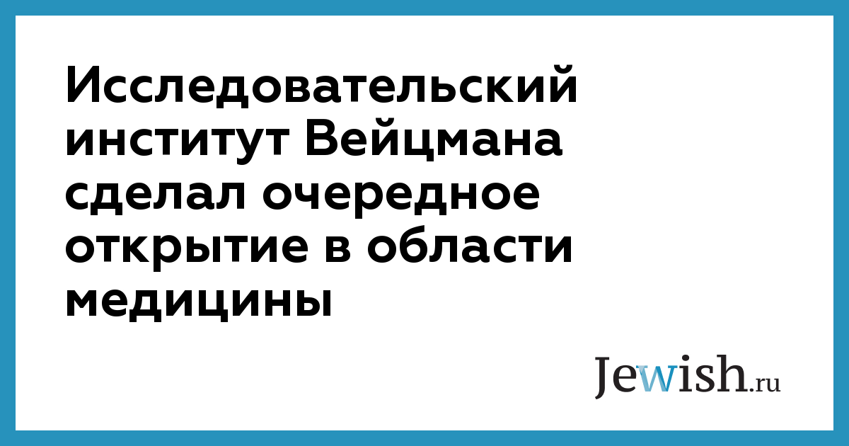 Исследовательский институт Вейцмана сделал очередное открытие в области медицины