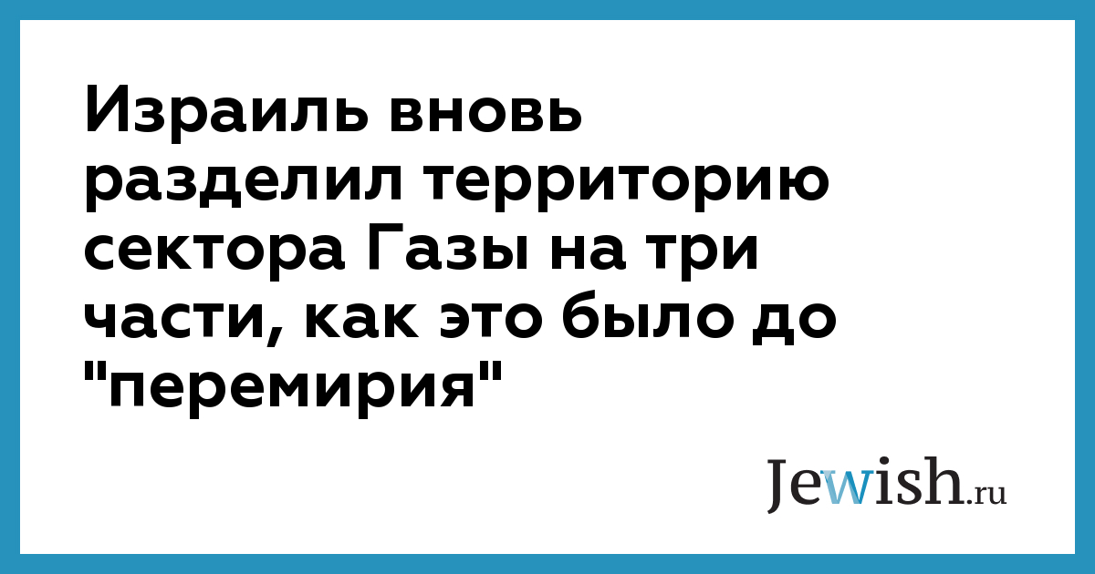 Израиль вновь разделил территорию сектора Газы на три части, как это было до "перемирия"